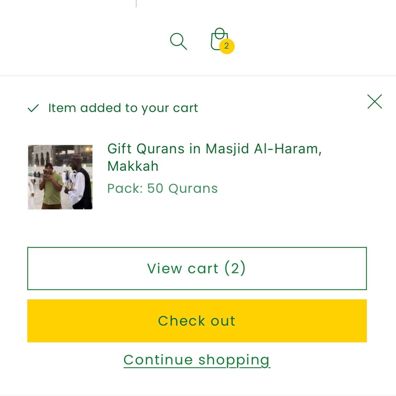 Select a Quran, prayer mat, or meal, and complete your gift online.
